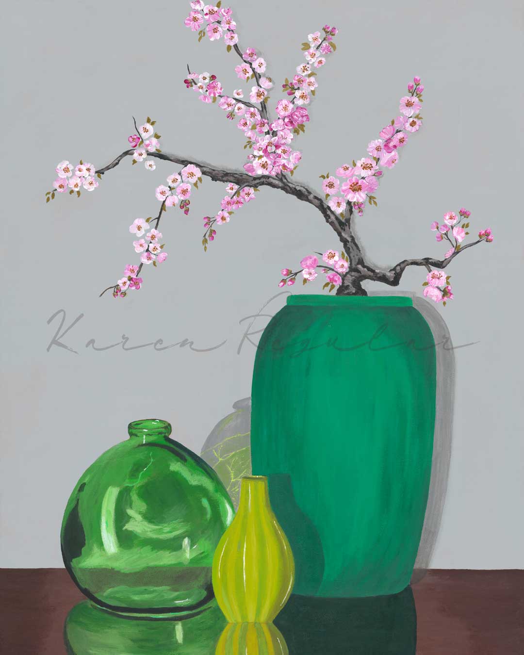 Karen has always had a creative spark and enjoyed artistic pursuits, and has decided to pursue art as a professional in 2023. She specializes in acrylic paints, but has begun experimenting with mixed media and oils.